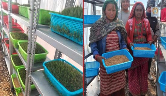 तिलाका महिला हाइड्रोपोनिक प्रविधिबाट हरियो घाँस उत्पादन गर्दै
