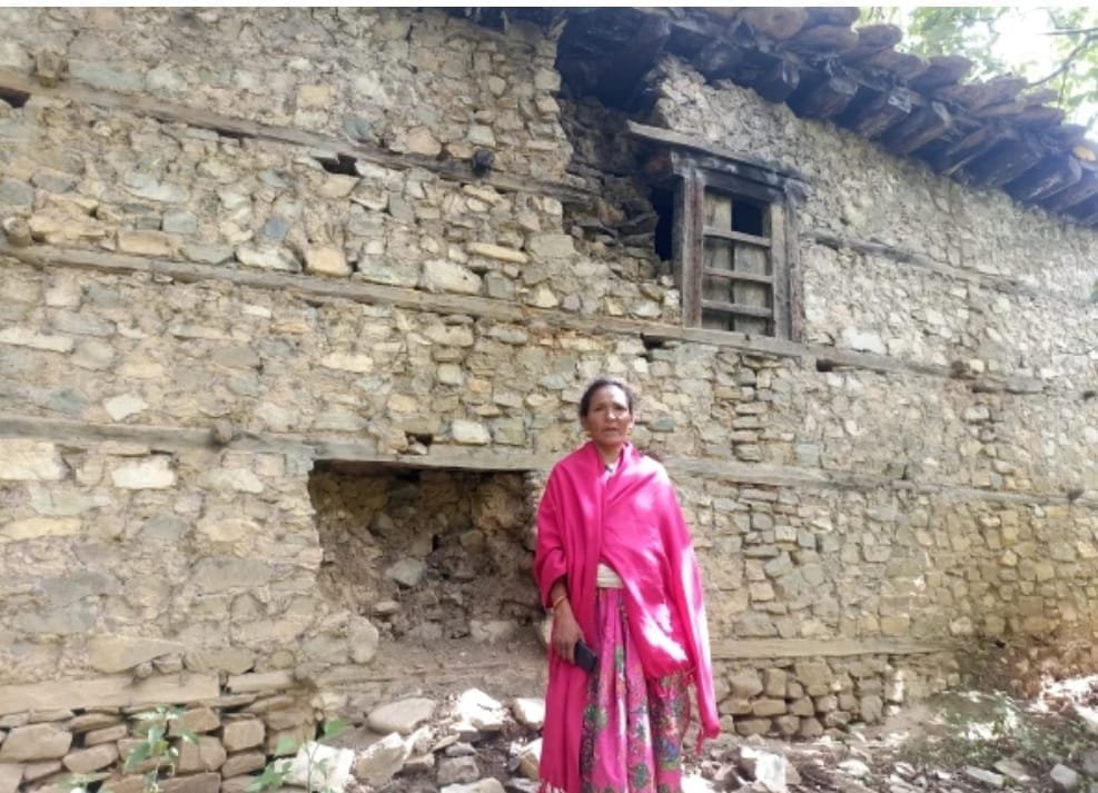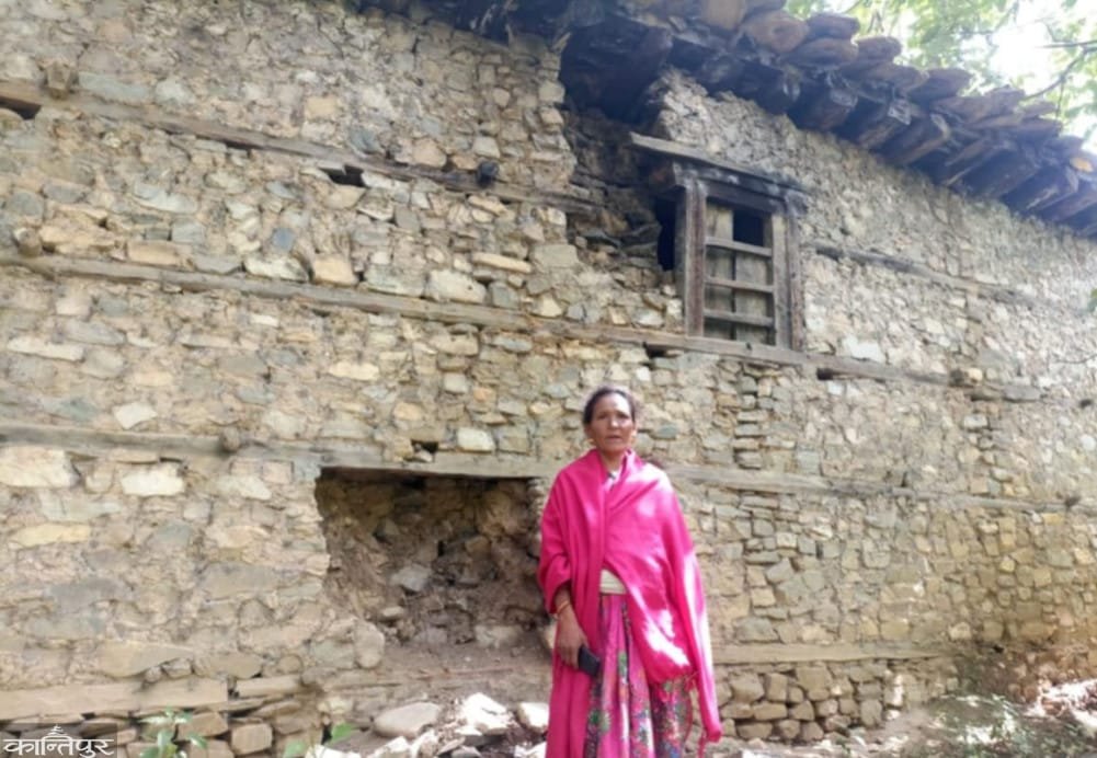 पटक–पटक भत्किँदै गएको घर समेत टालटुल गर्ने सकेकी छैनन् ।’ घर त ८ कोठाको छ । तर के गर्नु जताततै दरार परेको छ । चुहिने छानो छ,’ उनले भनिन्,‘कतिबेला भत्किने हो भन्ने चिन्ताले पिरोल्छ । उनले त आफूहरु चिहान घरमा बसिरहेको बताइरहेकी छन् ।’