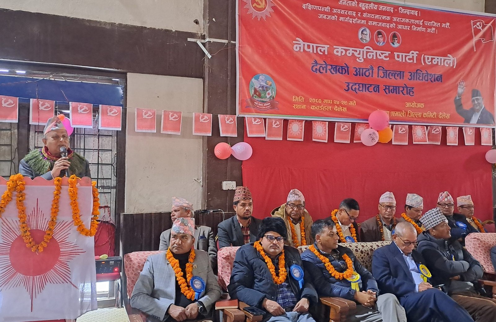नेकपा एमाले दैलेखका कार्यवहाक जिल्ला अध्यक्ष प्रेमबहादुर बुढाको अध्यक्षमा भएको जिल्ला अधिवेशन उद्घाटन कार्यक्रममा कर्णाली प्रदेश कमिटी अध्यक्ष गुलावजंग शाह, अनेमसंघका केन्द्रीय सचिव मीनासिंह रखाल, पार्टीका जिल्ला सचिव तिलक रिजाल, सहसचिव गंगाराम दाहाल लगायतले जिल्लाको राजनीतिक इतिहाँस र एमालेको सांगठनिक अवस्था विषयमा बोलेका थिए । उद्घाटन कार्यक्रम शनिवार सकिएको, आईतवार बन्दशत्र र सोमबार चाहिँ एक सय तीन जनाको जिल्ला नेतृत्व चयन गर्ने बताइएको छ ।