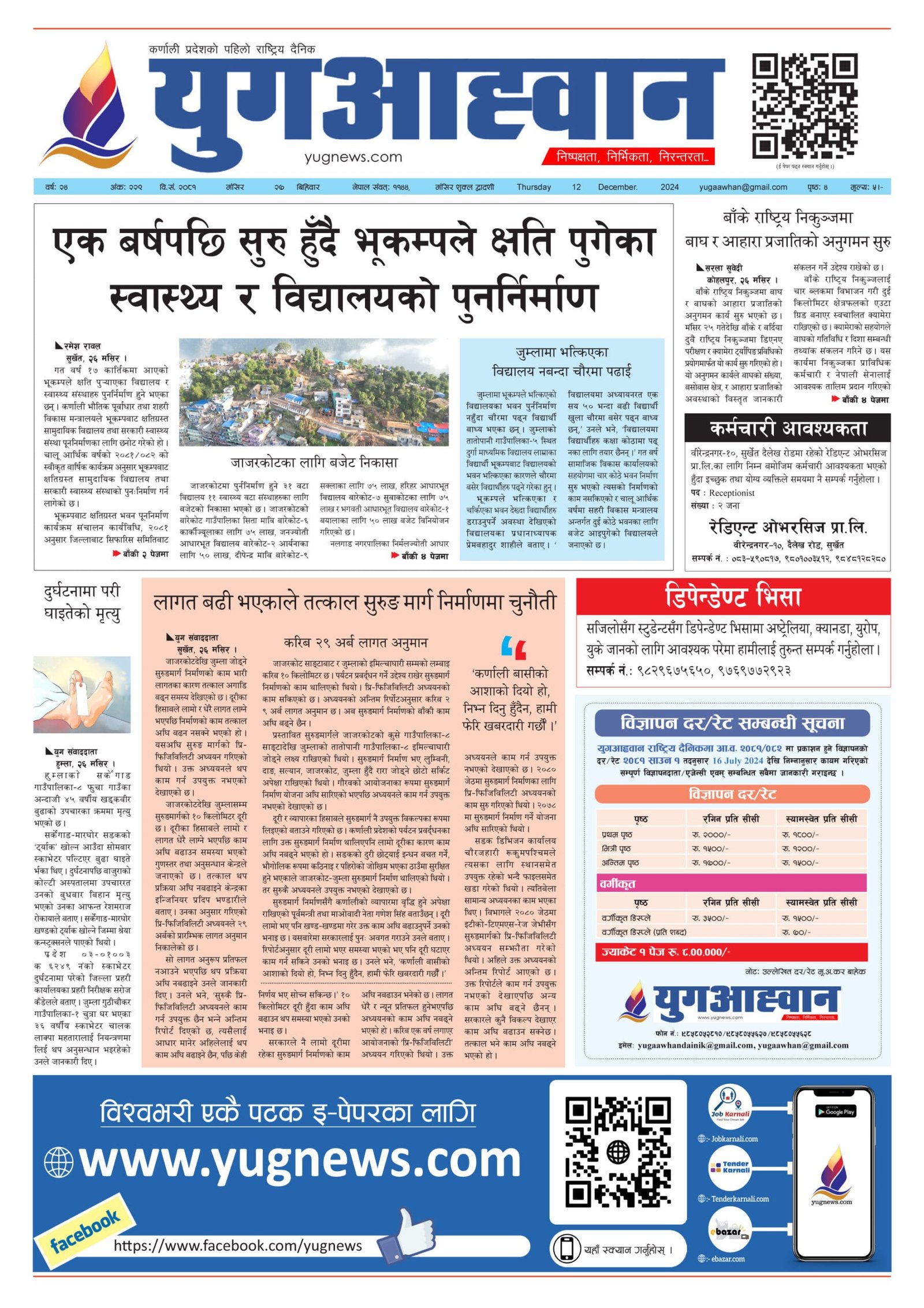 Yug Aahwan Daily - First Color Paper in Karnali Province