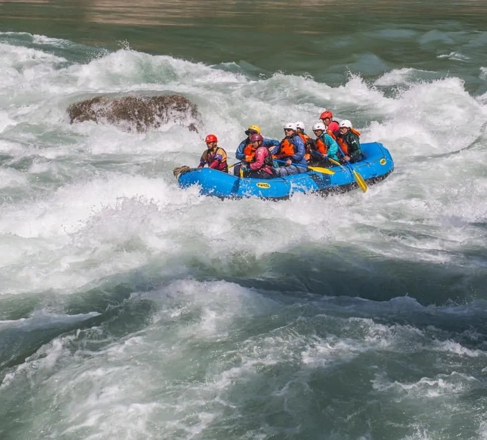 फोटो क्याप्सन : कर्णाली नदीमा रयाप्टिङमा रमाउँदै विदेशी तथा स्वदेशी पर्यटक ।