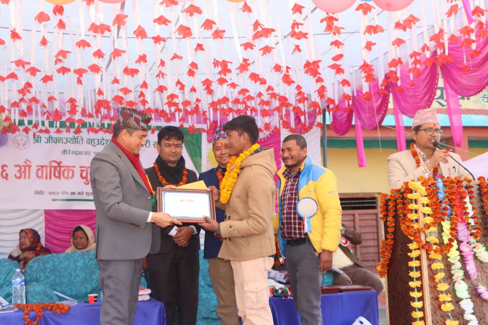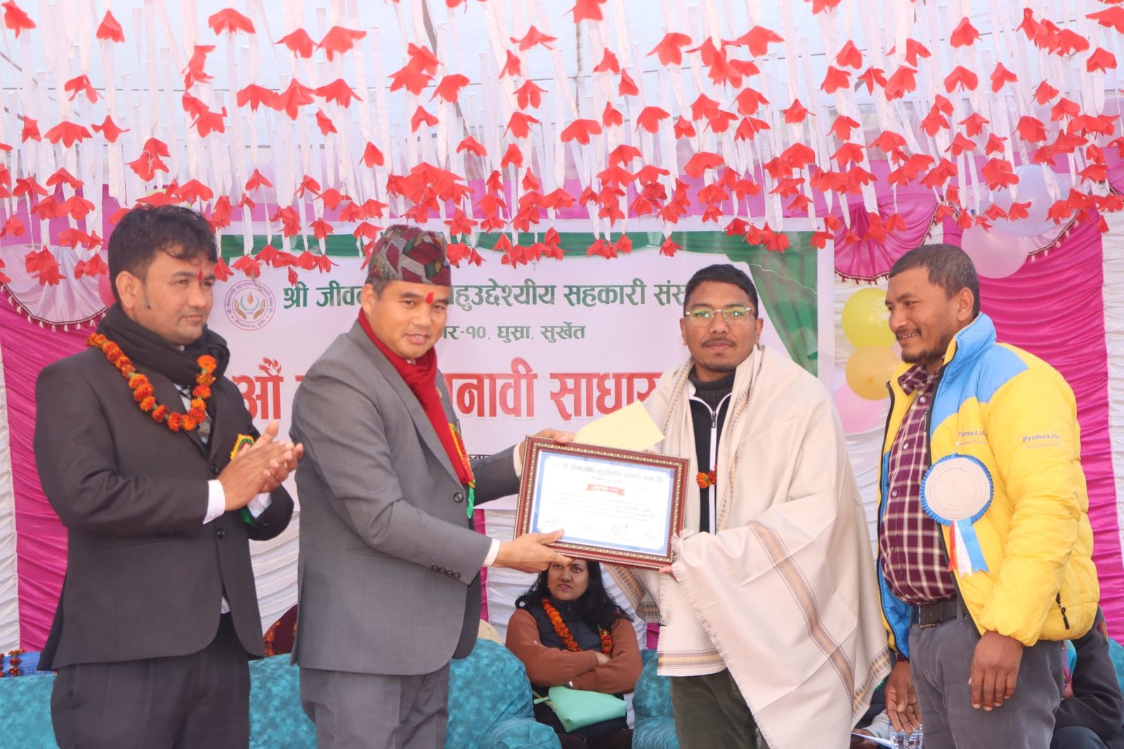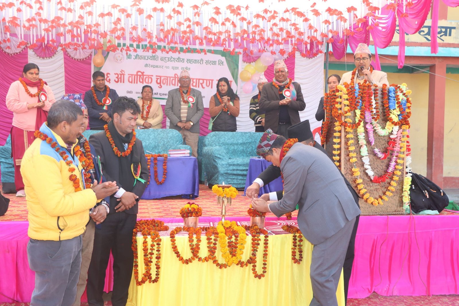 जीवनज्योति बहुउद्देश्यीय सहकारी संस्था लि. वीरेन्द्रनगर–१०, घुस्राको १६ औं बार्षिक साधारणसभा तथा चुनावी सभाबाट दिल बहादुर थापा (अल्फा माल्दाई) को अध्यक्षतामा ९ सदस्यीय सञ्चालक समिति सर्वसम्मत चयन गरेको छ । सञ्चालक समितिको उपाध्यक्षमा बालकुमारी विसी, सचिवमा दिपक कुमार बुढा, कोषाध्यक्षमा दिल बहादुर विसी चयन भएका छन् ।