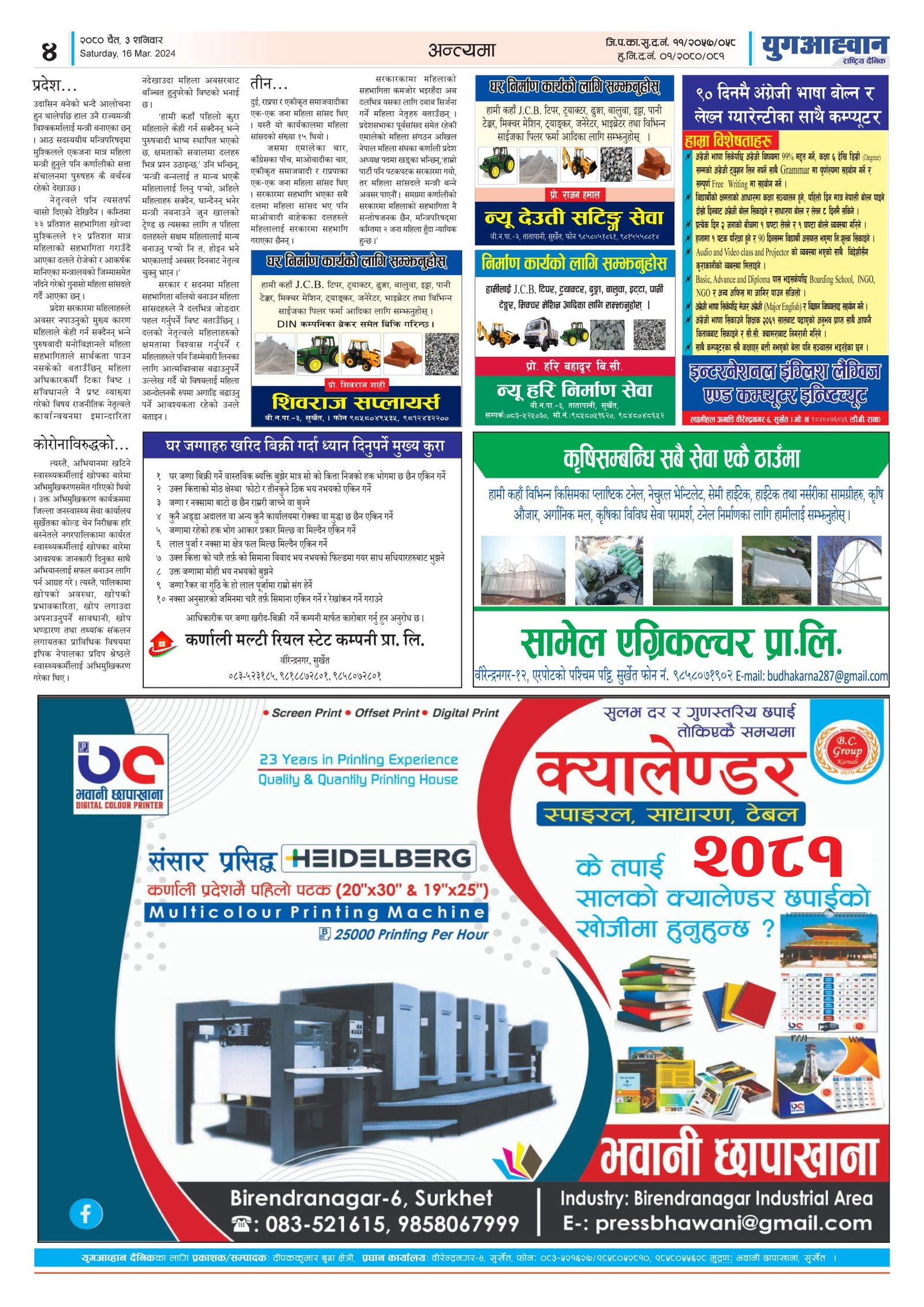 Yug Aahwan Daily - First Color Paper in Karnali Province