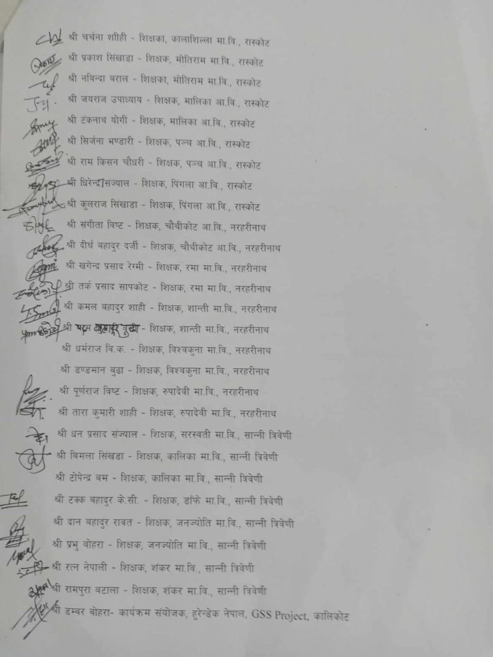 मानव अधिकार तथा वातावरण विकास केन्द्र हुरेन्डेक नेपाल कालीकोटको सहजिकरण, प्लान इन्टरनेश्नल नेपालको सहयोग र सशक्त बालिका परियोजना अन्तर्गत कालीकोटको रास्कोट नगरपालिकाका शिक्षकहरूलाई विद्यालयमा लैङ्गिक रुपान्तरण, कक्षा कोठा व्यवस्थापन, सिकाईलगायतका कुरामा ध्यान दिन तालिमको आयोजना गरिएको हो ।