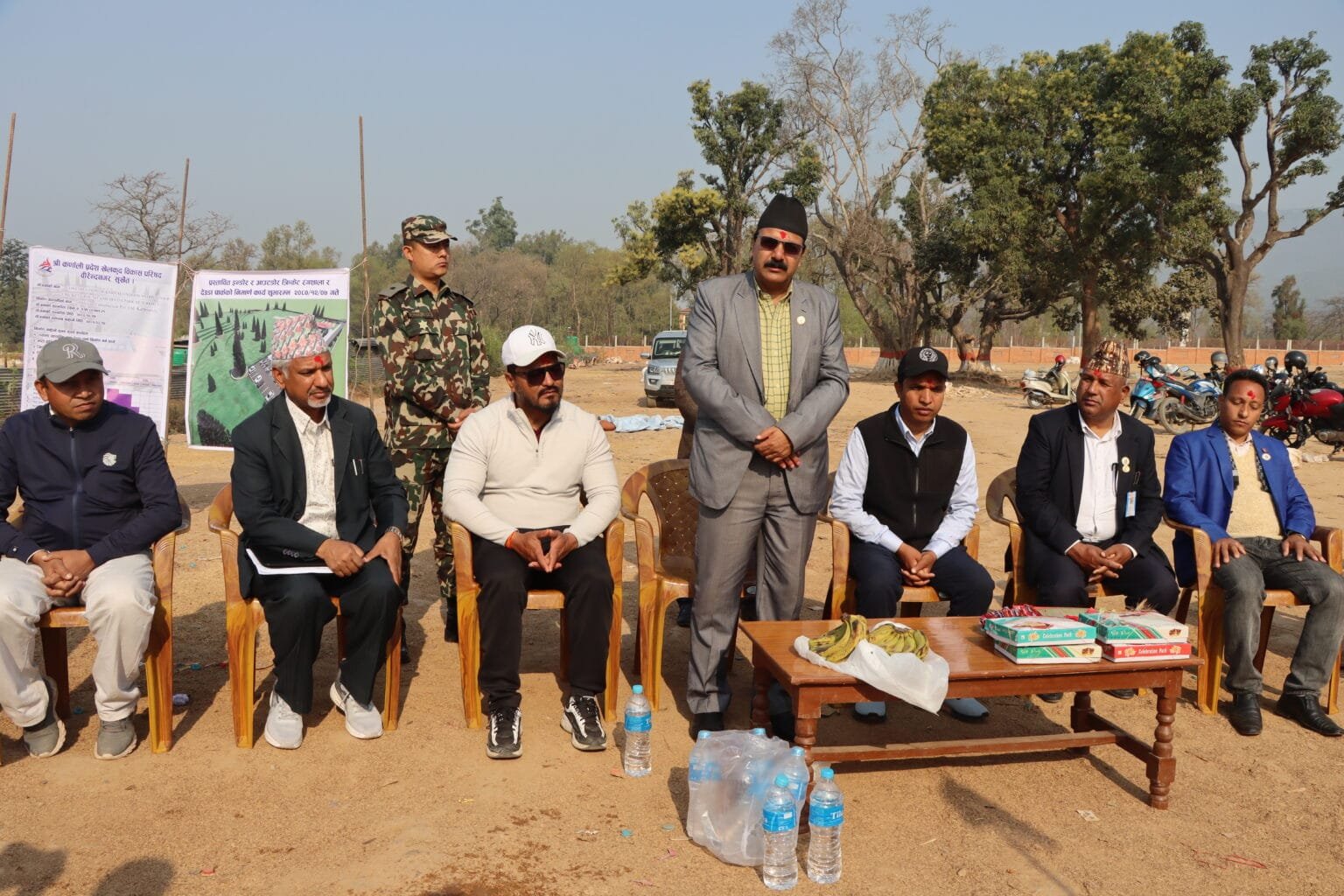 प्रदेश राजधानी सुर्खेतको वीरेन्द्रनगरमा प्रस्तावित ‘इन्डोर तथा आउटडोर क्रिकेट रङ्गशाला र देउडा पार्क’ को बुधवार शिलान्यास गर्दै उनले १०औँ राष्ट्रिय खेलकुद प्रतियोगितालाई लक्षित गरी क्रिकेट मैदान बनाउन लागिएको जानकारी दिए ।