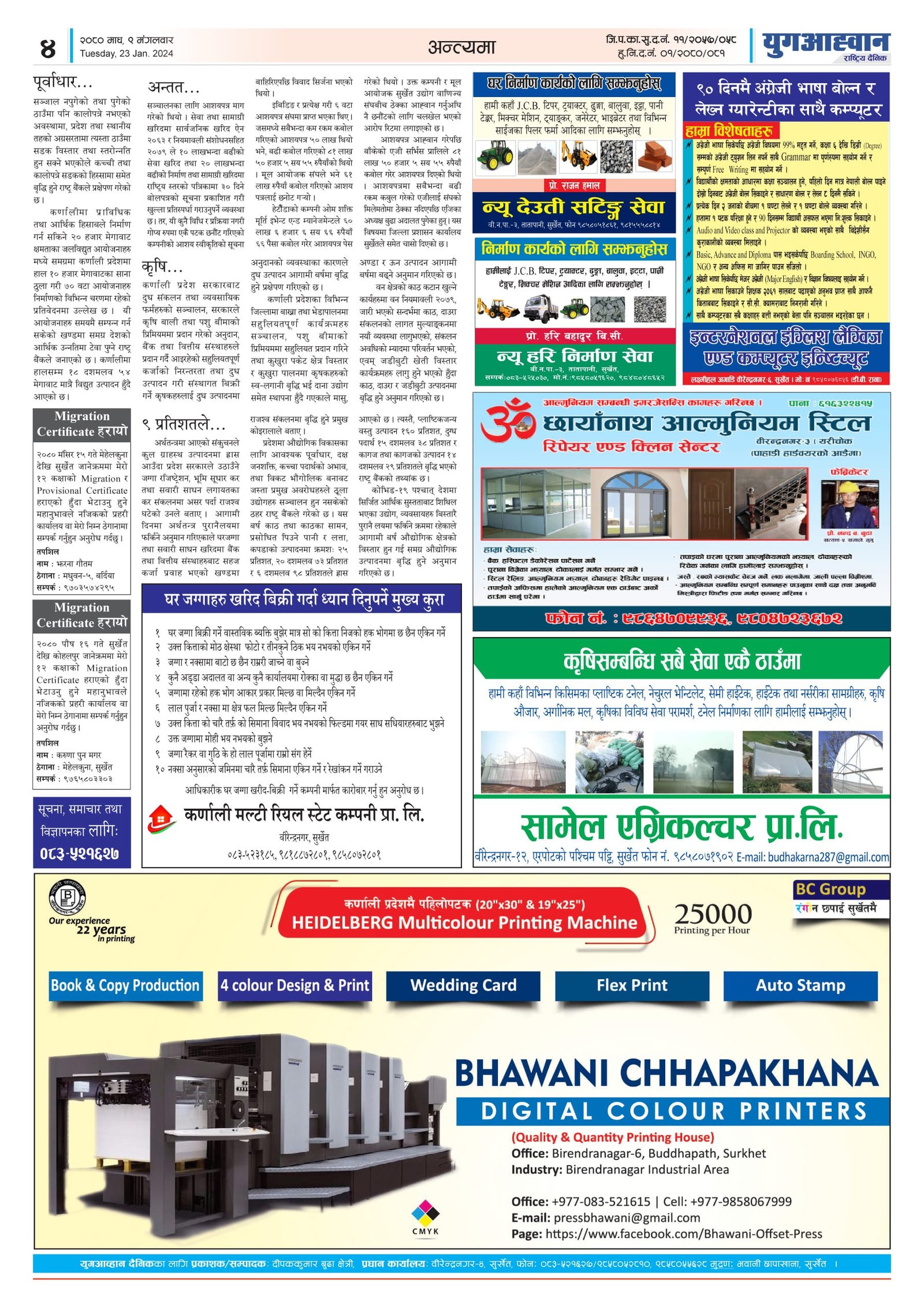 Yug Aahwan Daily - First Color Paper in Karnali Province