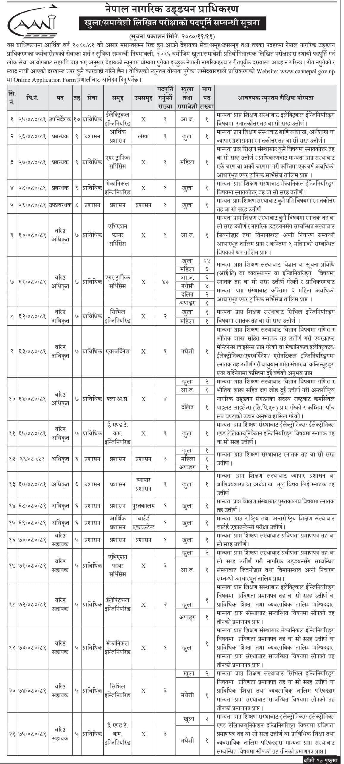 नेपाल नागरिक उड्डयन प्राधिकरणले ९८ जना कर्मचारी माग गरेको छ ।