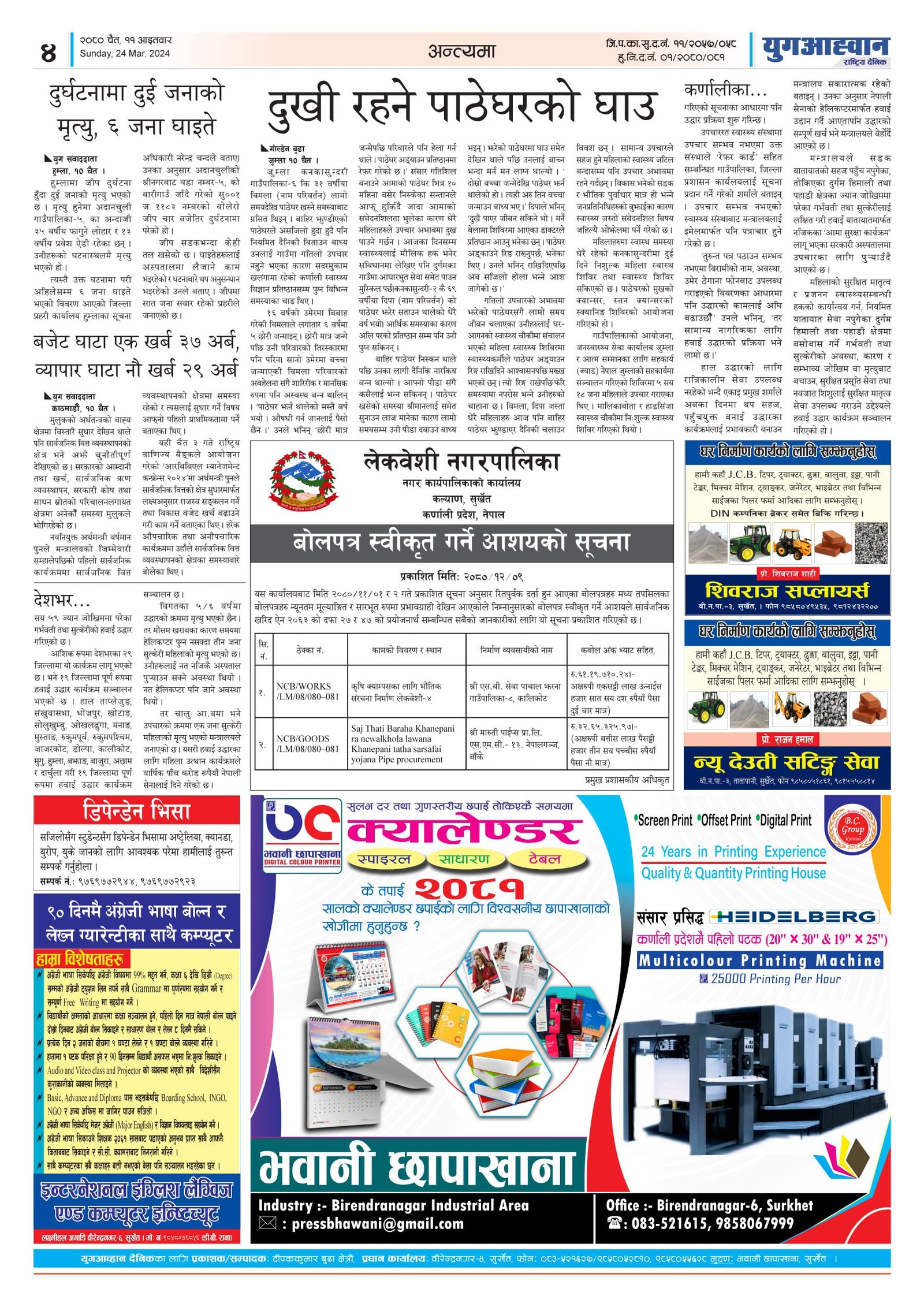 Yug Aahwan Daily - First Color Paper in Karnali Province