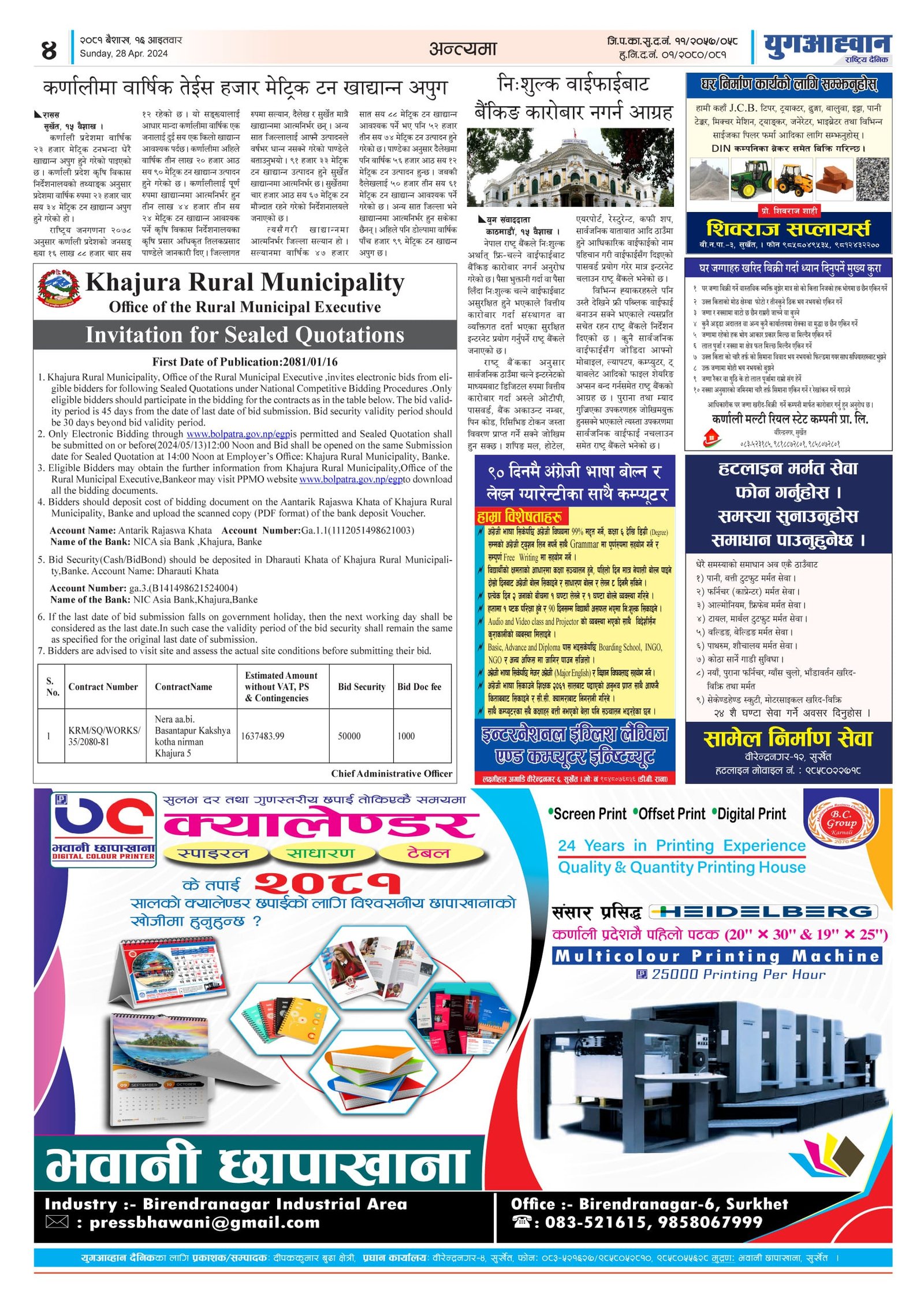 Yug Aahwan Daily - First Color Paper in Karnali Province