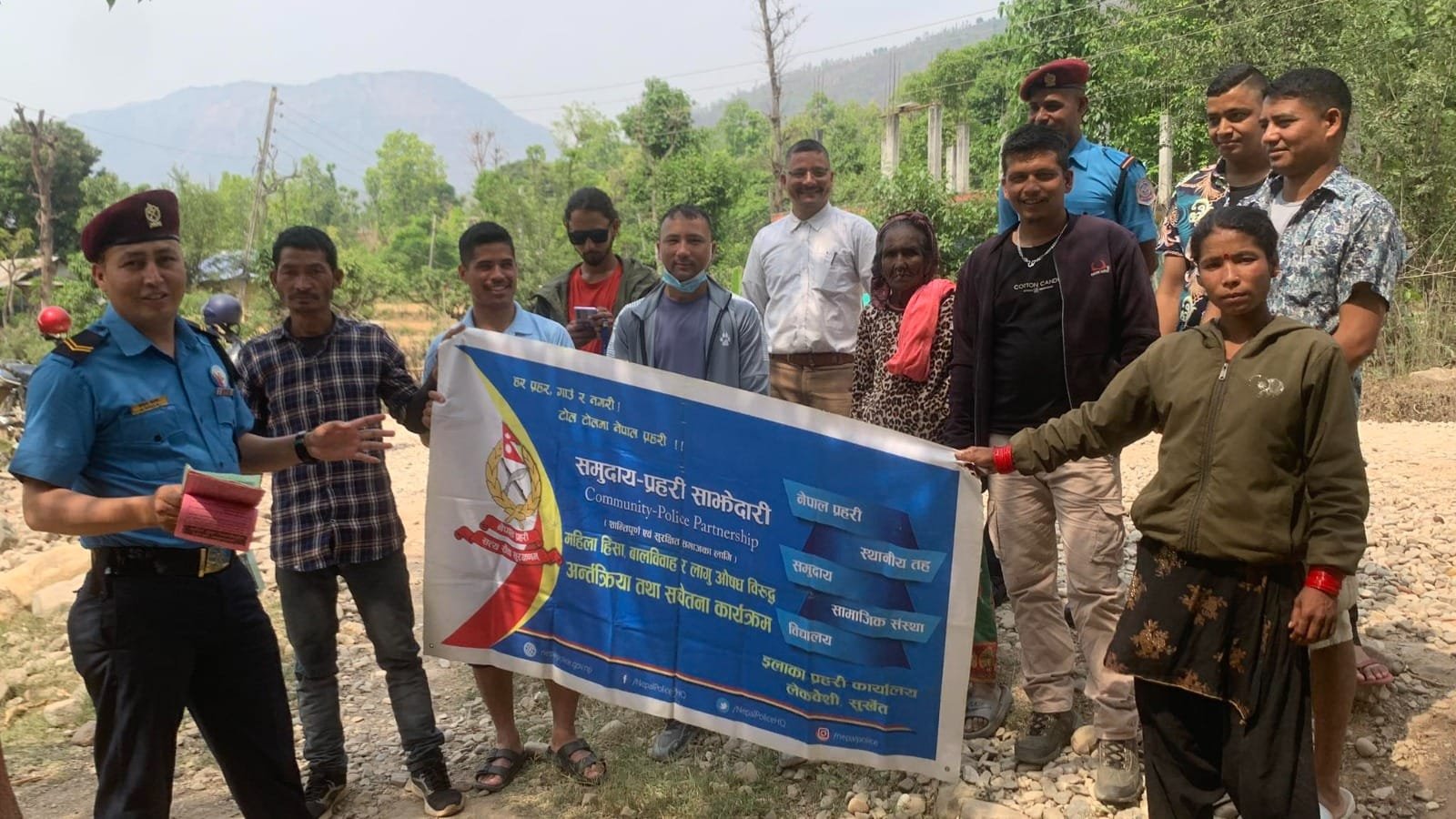 समुदाय–प्रहरी साझेदारी कार्यक्रम र यात्रू सुरक्षा अभियान २०८१ अन्तर्गत सचेतनामुलक कार्यक्रम जिल्ला प्रहरी कार्यालय सुर्खेतले सुर्खेतको पञ्चपुरी नगरपालिका वडा नं.५ स्थित बाबियाचौर, सिम्ता गाँउपालिका वडा नं. ६ स्थित बादेपिपल चेक पोष्ट, भेरीगंगा नगरपालिका वडा नं. ९ स्थित जहरे चेक पोष्टमा अ.ट्रा.प्र.पोष्ट, लेकबेशी नगरपालिका वडा नं. ६ स्थित हिलेसोतामा अ.ट्रा.प्र.पोष्ट, र अस्थायी प्रहरी पोष्ट बोटेचौरमा सचेतनामुलक कार्यक्रम गरेको हो ।