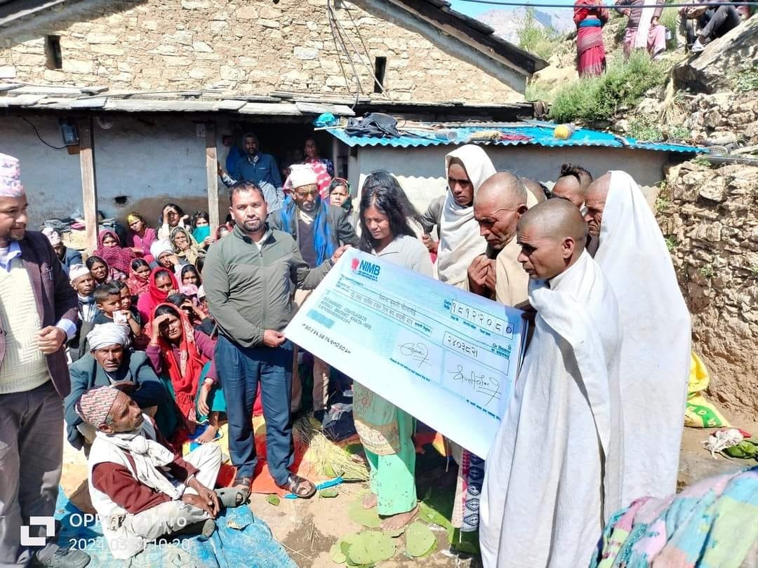 सामाजिक अभियान्ता तथा सफल ब्यवसायि हिरामणी चौलागाई सहितको टोलीले रकम संकलन गरेको हो । दुखत कुरा बुवा ,छोरी दुवैको मृत्यु भयो । उपचारको समयमा केही रकम दिएपनी आइतबार १३ औँ दिनको तिथिमा २ लाख,४० हजार,३ सय,८२ रुपैयाको चेक हस्तान्तरण गरिएको हो । सामाजिक अभियान्ता हिरामणी चौलागाईले दुखको समयमा सानो ,ठुलो रकम सहयोग गर्ने सम्पुर्ण सहयोगी मनहरुलाई धन्यवाद दिएका छन् ।