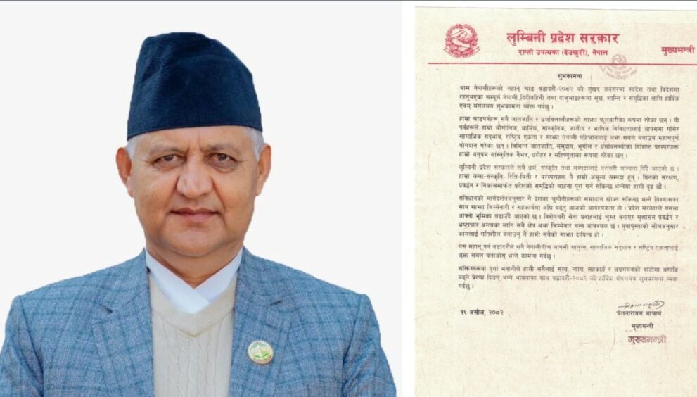 लुम्बिनी प्रदेशका मुख्यमन्त्री चेतनारायण आचार्यले संविधानको मार्गदर्शनअनुसार वर्तमान चुनौतीहरूको समाधान गर्न सकिने बताउनुभएको छ । वडादशैं–२०८२ को अवसरमा बिहिवार शुभकामना व्यक्त गर्दै उहाँले साझा जिम्मेवारी र सहकार्यमार्फत समस्याको समाधान गर्न सकिनेमा जोड दिनुभएको हो ।