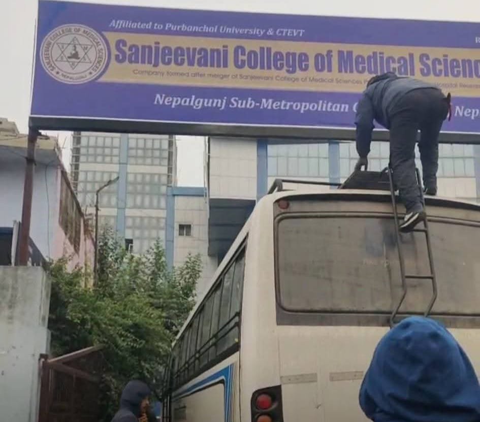 नेपालगन्ज मेडिकल कलेजका आन्दोलनरत कर्मचारीहरूले सन्जीवनी कलेज अफ मेडिकल साइन्सेस प्रालिको बोर्ड हटाएका छन् । उच्च अदालत तुलसीपुर, नेपालगन्ज इजलासले सेवा प्रवाहलाई प्रभावित पार्ने गरी भइरहेको आन्दोलन रोक्न अन्तरिम आदेश जारी गरेको दुई दिनपछि यो घटना भएको हो ।