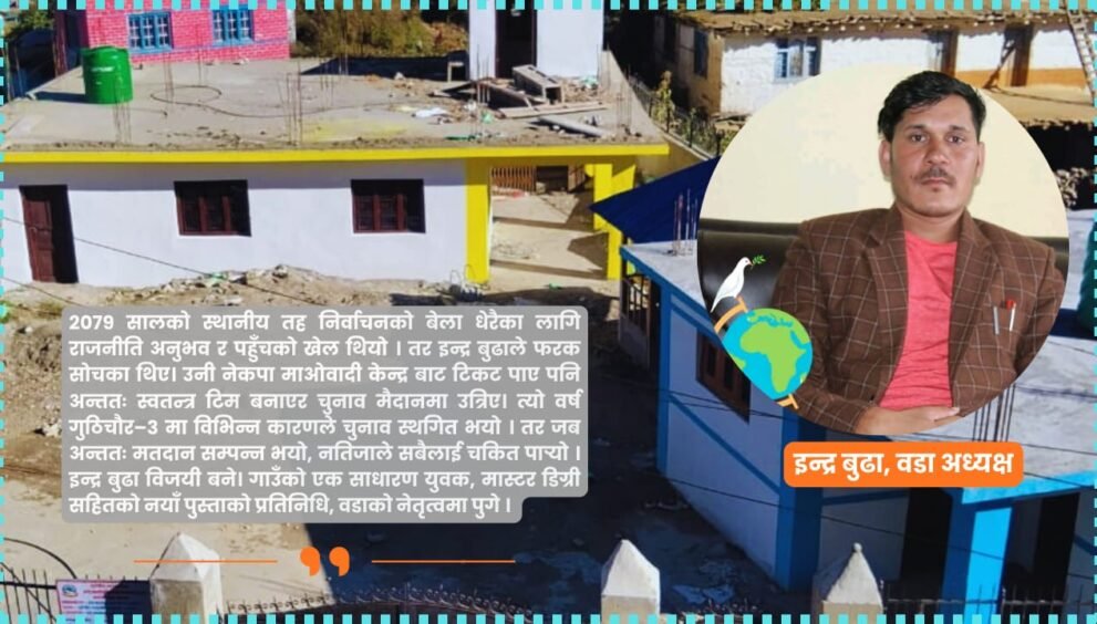 त्यो वर्ष गुठिचौर–३ मा विभिन्न कारणले चुनाव स्थगित भयो । तर जब अन्ततः मतदान सम्पन्न भयो, नतिजाले सबैलाई चकित पार्यो । इन्द्र बुढा विजयी बने। गाउँको एक साधारण युवक, मास्टर डिग्री सहितको नयाँ पुस्ताको प्रतिनिधि, वडाको नेतृत्वमा पुगे ।