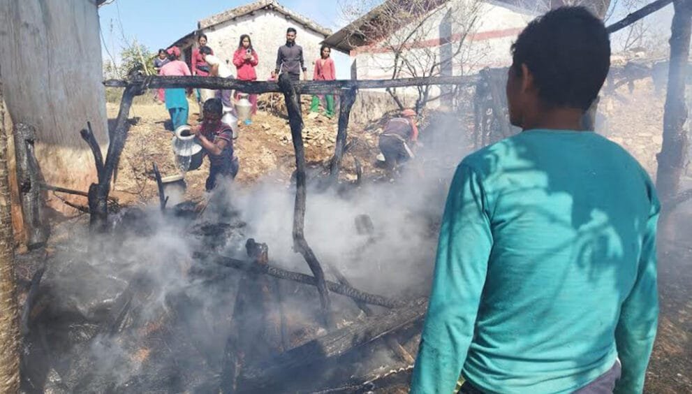 आगलागीबाट जल्यो घर र गोठ