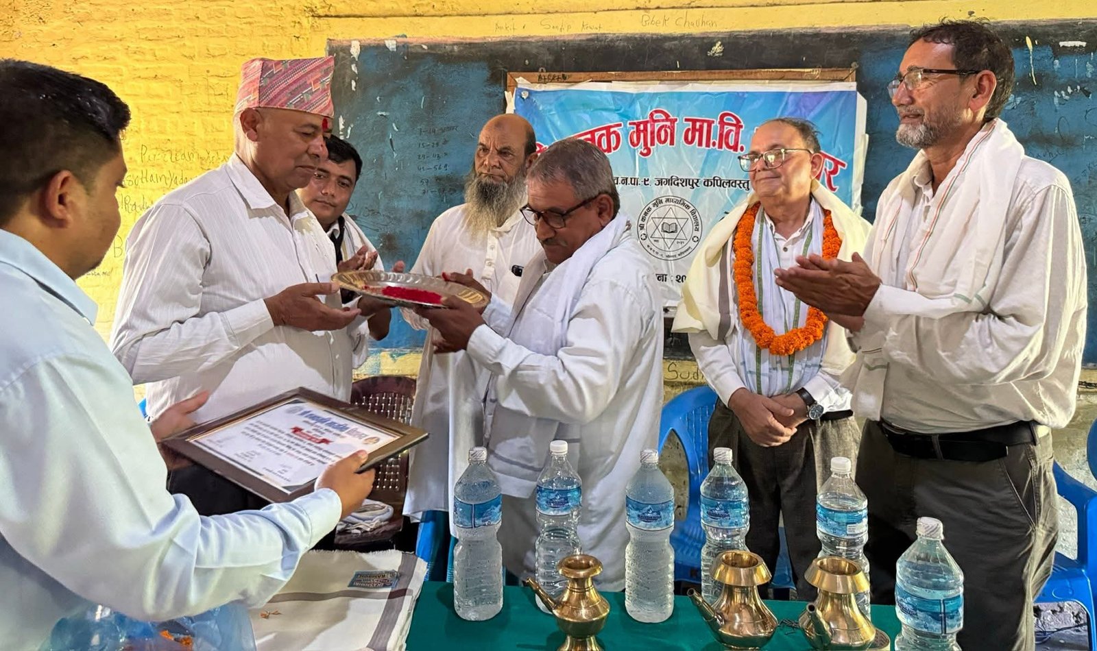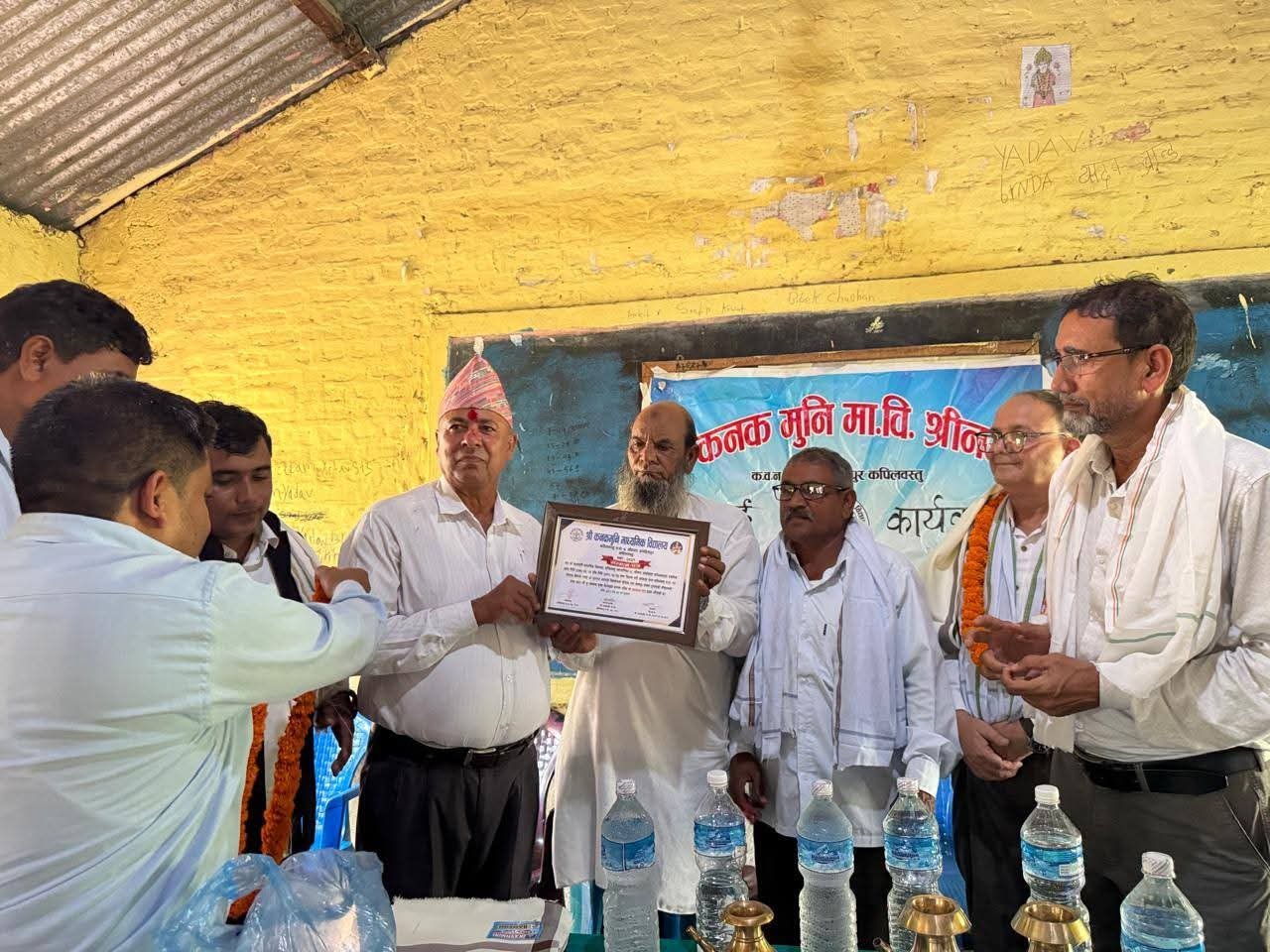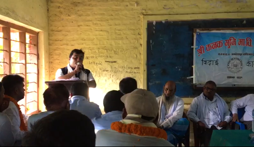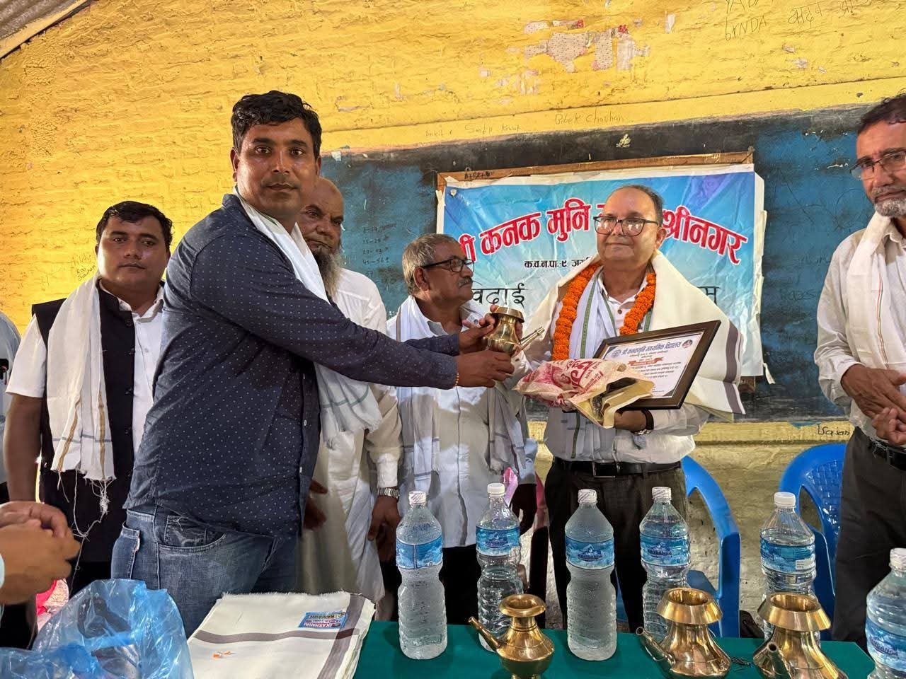 कपिलवस्तु नगरपालिका–९ श्रीनगरस्थित श्री कनकमुनी माध्यमिक विद्यालयमा बुधबार आयोजित एक विशेष समारोहका बीच अवकाश प्राप्त तथा शिक्षक सेवा पास भई अन्यत्र जाने चार जना शिक्षकलाई सम्मानपूर्वक बिदाइ गरिएको छ।