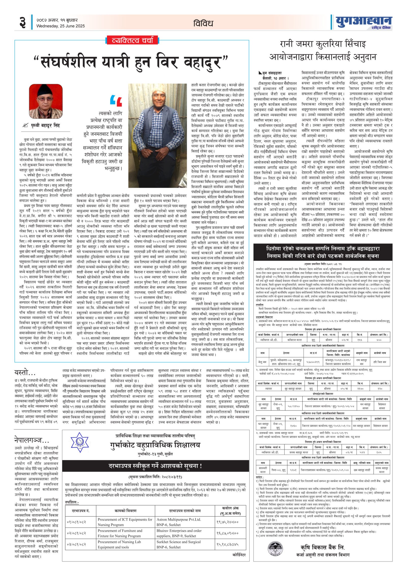 “संघर्षशील यात्री हुन विर वहादुर”