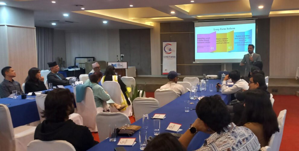 निर्वाचन प्रक्रिया र प्रणाली सुधारका क्षेत्रमा काम गर्दै आएको ‘चेतना परियोजना’ले निर्वाचनको मिति घोषणापछि गरेको अनुसन्धानबाट निर्वाचनलाई स्वच्छ, स्वतन्त्र, निष्पक्ष र मितव्ययी तुल्याउन थप केही नीतिगत विषयमा प्रभावकारी सुधारको खाँचो औँल्याएको हो ।