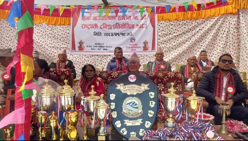 जुम्लाकाे खेलकुदप्रतिको उत्साह र संभावनालाई उजागर गर्दै जुम्लाको हिमा गाउँपालिकामा १६औं राष्ट्रपति रनिङ सिल्ड प्रतियोगिता सुरु भएको छ। बिहीबार नेत्रज्योति माध्यमिक विद्यालय, ओदीमा सुरु प्रतियोगिताले स्थानीयस्तरमै खेल प्रतिभा खोज्ने र घोट्ने अभियानलाई थप बल दिएको छ।