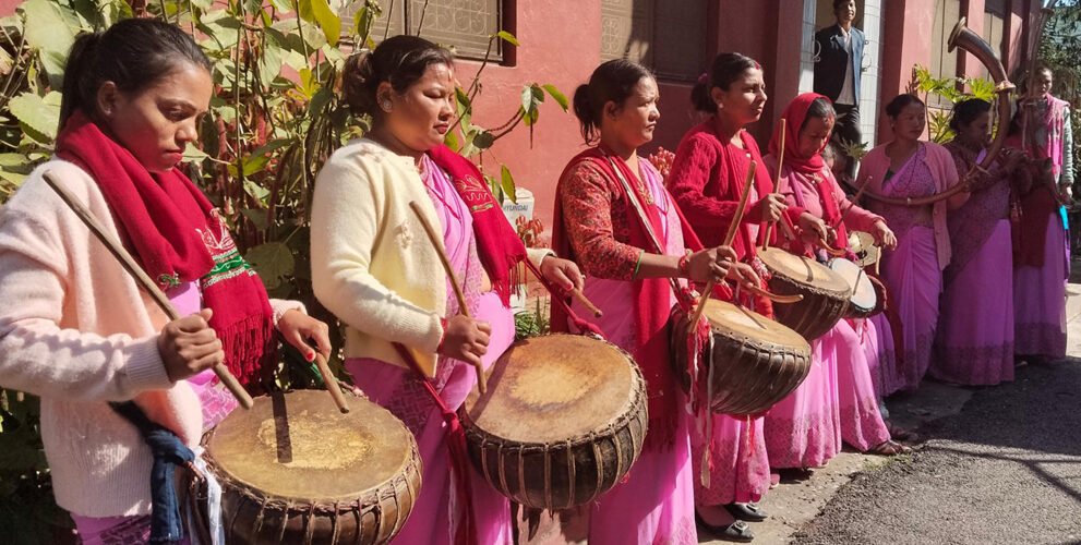 महिला समूहलाई नौमती बाजा बजाउन भ्याइनभ्याई