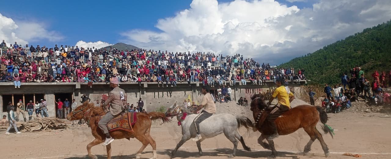 गाेल्डेन बुढा जुम्ला,१३ असोज। जुम्लाको चन्दननाथ नगरपालिका-५ अवस्थित राजासिम मैदानमा जुम्ली घोडादौड प्रतियोगिता गरिएको छ। पछिल्लो समयमा घोडाहरु लोप हुँदै