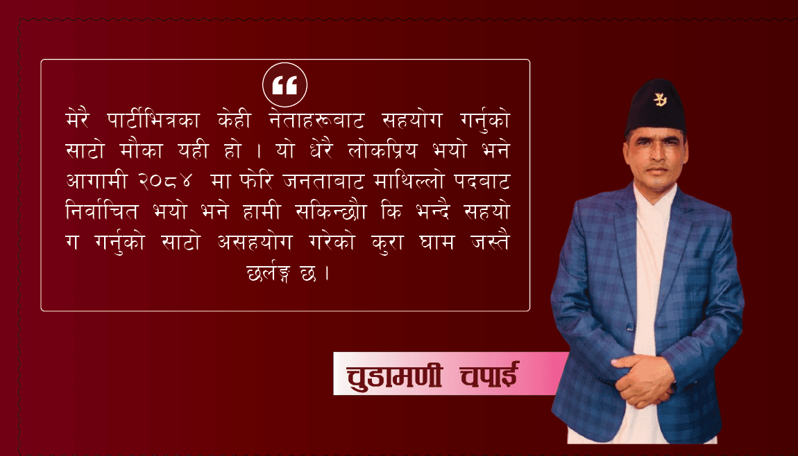 03 / २०८१ बैशाख २१ गते May / २०८१ बैशाख २१ गते चुडामणी चपाई जिन्दगीका संघर्ष र वडा अध्यक्षको अनुभव युग संवाददाता / 2 years 0 0 min read (लेखक : वीरेन्द्रनगर–१२ का वडा अध्यक्ष हुन भने लेखमा उल्लेखित कुरा उनका निजी विचार तथा भावना हुन ।)