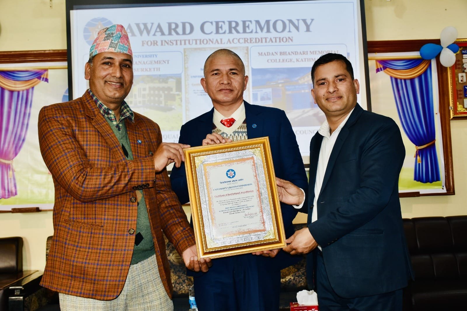 मध्यपश्चिम विश्वविद्यालयको स्वायत्त संस्था ‘मध्यपश्चिम विश्वविद्यालय स्कुल अफ म्यानेजमेन्ट (मुसोम)’ ले विश्वविद्यालय अनुदान आयोगबाट गुणस्तर सुनिश्चितता एवं प्रत्यायन प्रमाणपत्र प्राप्त गर्न सफल भएको छ । विश्वविद्यालय अनुदान आयोगद्वारा आयोजित एक समारोह बीच आयोगका अध्यक्ष प्रा. डा. देवराज अधिकारीले मध्यपश्चिम विश्वविद्यालय स्कुल अफ म्यानेजमेन्ट (मुसोम) लाई उक्त प्रमाणपत्र हस्तान्तरण गरे । कार्यक्रमको अध्यक्षता विश्वविद्यालय अनुदान आयोगका […]